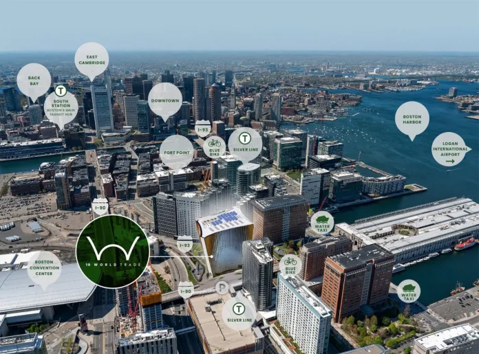 The Seaport currently features 11.9 million square feet of commercial office and lab space, with a focus on life sciences and innovation economy companies. The neighborhood and 10 World Trade have easy access to the waterfront, downtown and Logan Airport, along with the I-90 and I-93 highway systems and a broad range of public transportation options including the MBTA Silver Line, a water taxi, key bus routes, BLUEbikes and Zipcar locations. Upon delivery, 10 World Trade corporate tenants will have the opportunity to occupy a full building in the Seaport with signage and visibility.