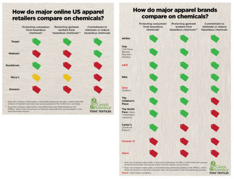 WASHINGTON– A new report found that top U.S. clothing retailers and brands need to do better on toxic chemical management policies. The “Toxic Textiles” report by Green America provides a company-by-company breakdown of 15 major corporations and shows significant room for improvement across the sector on hazardous chemicals use, workplace conditions, and transparency.