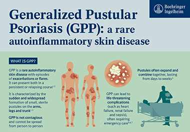 GPP is a rare skin disease, which is distinct from plaque psoriasis.4 GPP flares greatly affect a person’s quality of life and can lead to serious and life-threatening complications, including heart failure, renal failure, and sepsis.4