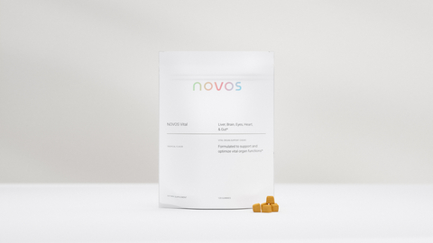Carefully curated by a world class renowned team of health and longevity scientists and experts, NOVOS Vital daily chews are designed to enhance cognitive functions, promote cardiovascular health, contribute to healthy eye aging, support metabolic and essential gut functions and aid in muscle strength and mobility. Combating these bodily declines that come with aging, NOVOS longevity supplements are critical for enhanced healthspan and lifespan.