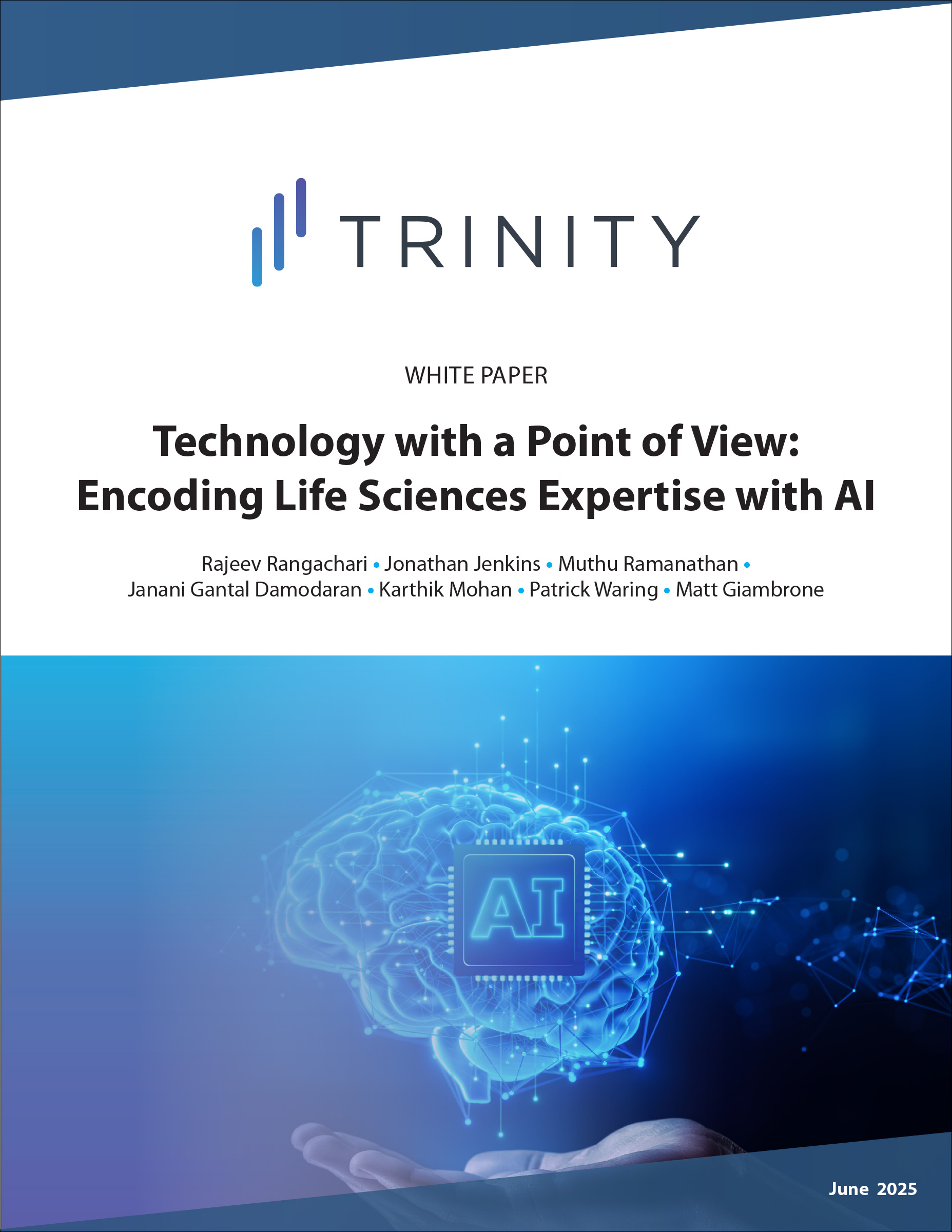 WALTHAM, Mass.–Â Trinity Life Sciences has released a new technical white paper exploring how life sciences companies can effectively adopt and scale generative AI (GenAI) technologies. The paper, Technology with a Point of View: Encoding Life Sciences Expertise with AI, outlines strategic guidance for organizations looking to transition from early GenAI experimentation to full-scale transformation.